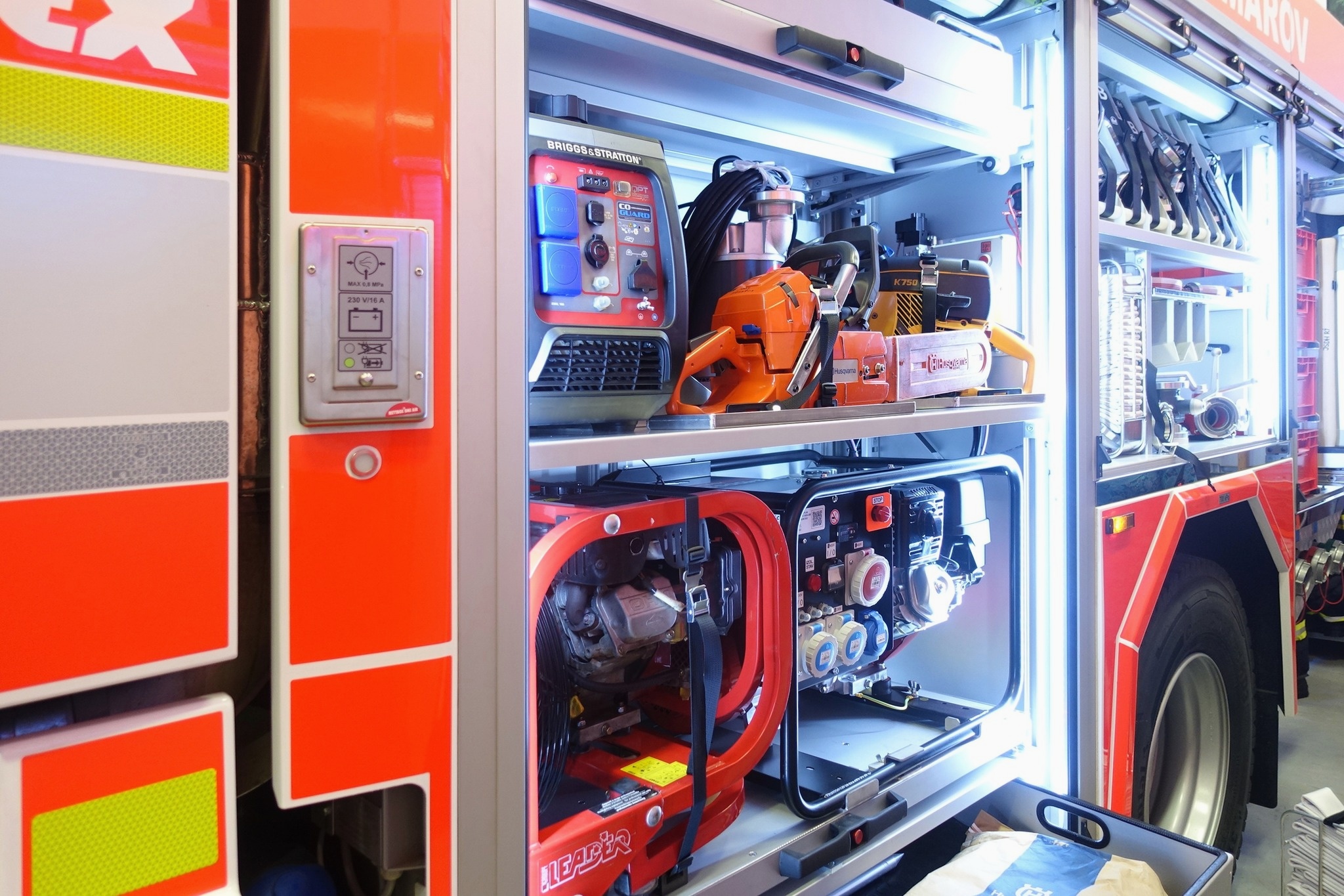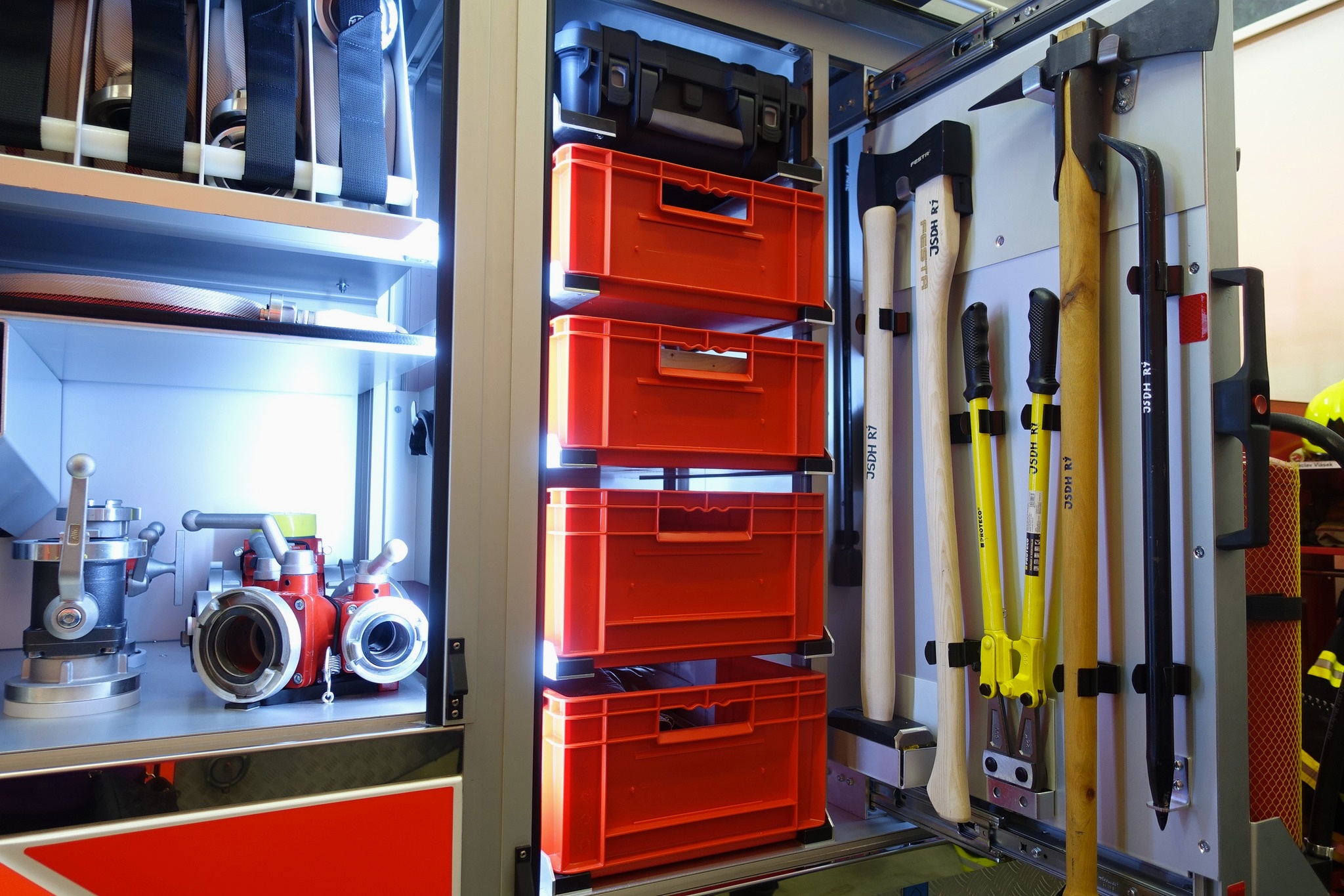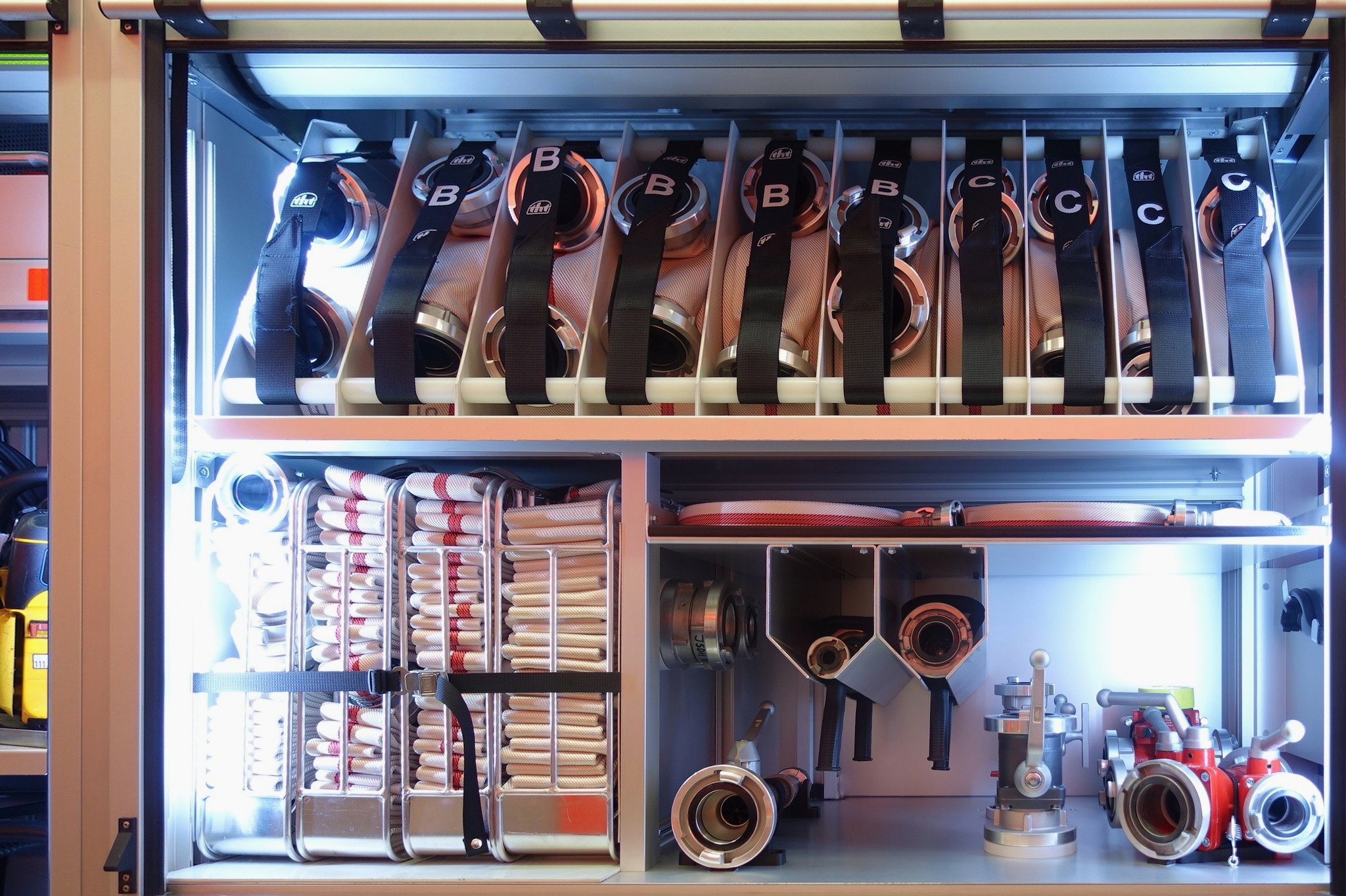 Ještě působivější než vůz samotný jsou jeho doplňky a vybavení. O výsuvném stožáru s výkonným reflektorem jste už možná slyšeli, zrovna tak roletkový úložný systém v zadní části vozu není žádná novinka. Ale řekněte sami – už jste někdy viděli, aby hasičské auto, které potřebuje projet spáleništěm, samo dohašovalo terén těsně před sebou pomocí integrované asistenční lišty pod přední částí vozu? Nebo že se kromě hlavní proudnice na vršku vozu dá hasit i menší lafetovou stříkačkou, která je integrovaná přímo do předního nárazníku?