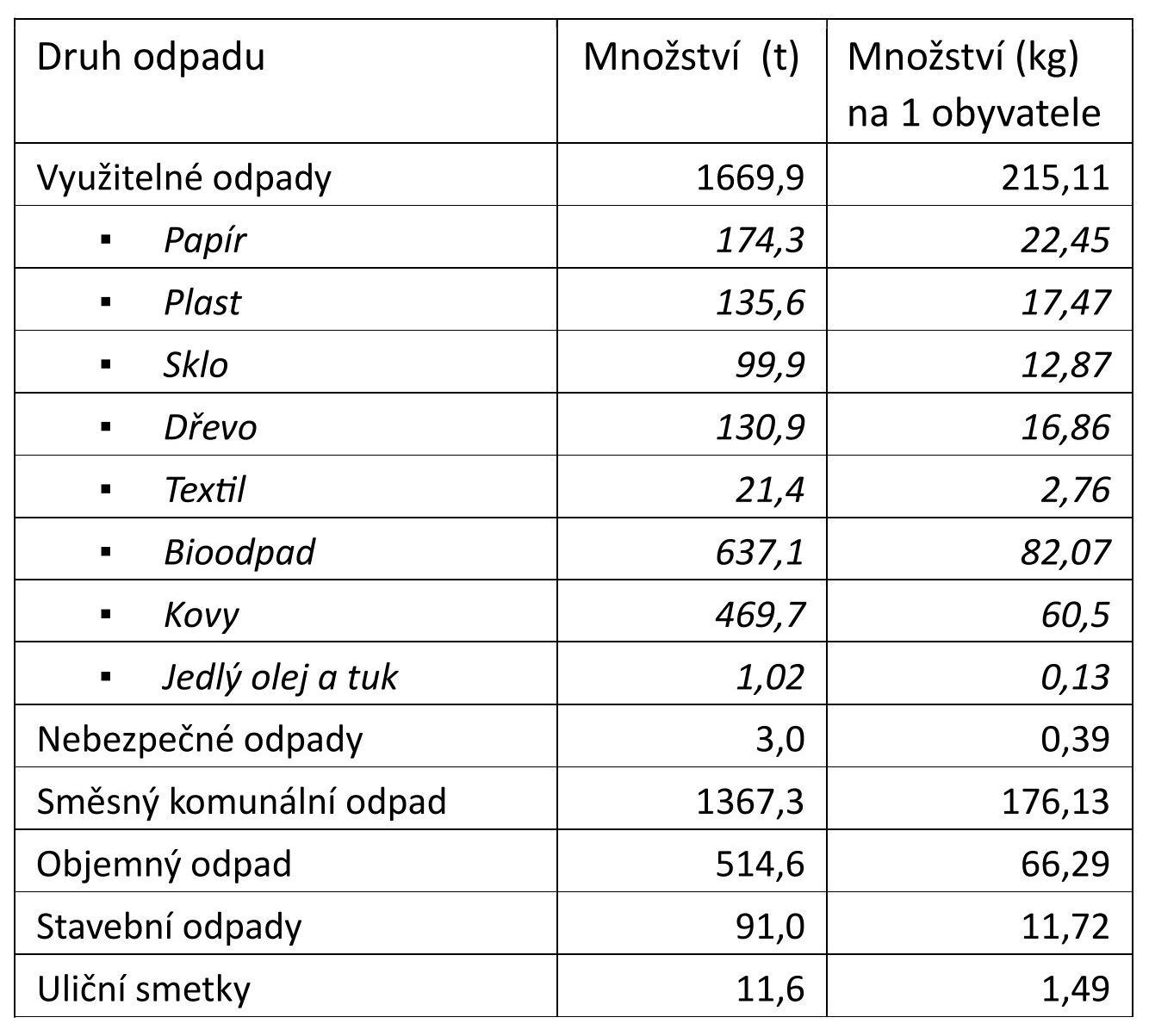 Míra třídění, tedy poměr mezi využitelnými odpady a celkovým množstvím odpadů za rok, činí 45,7 %.
