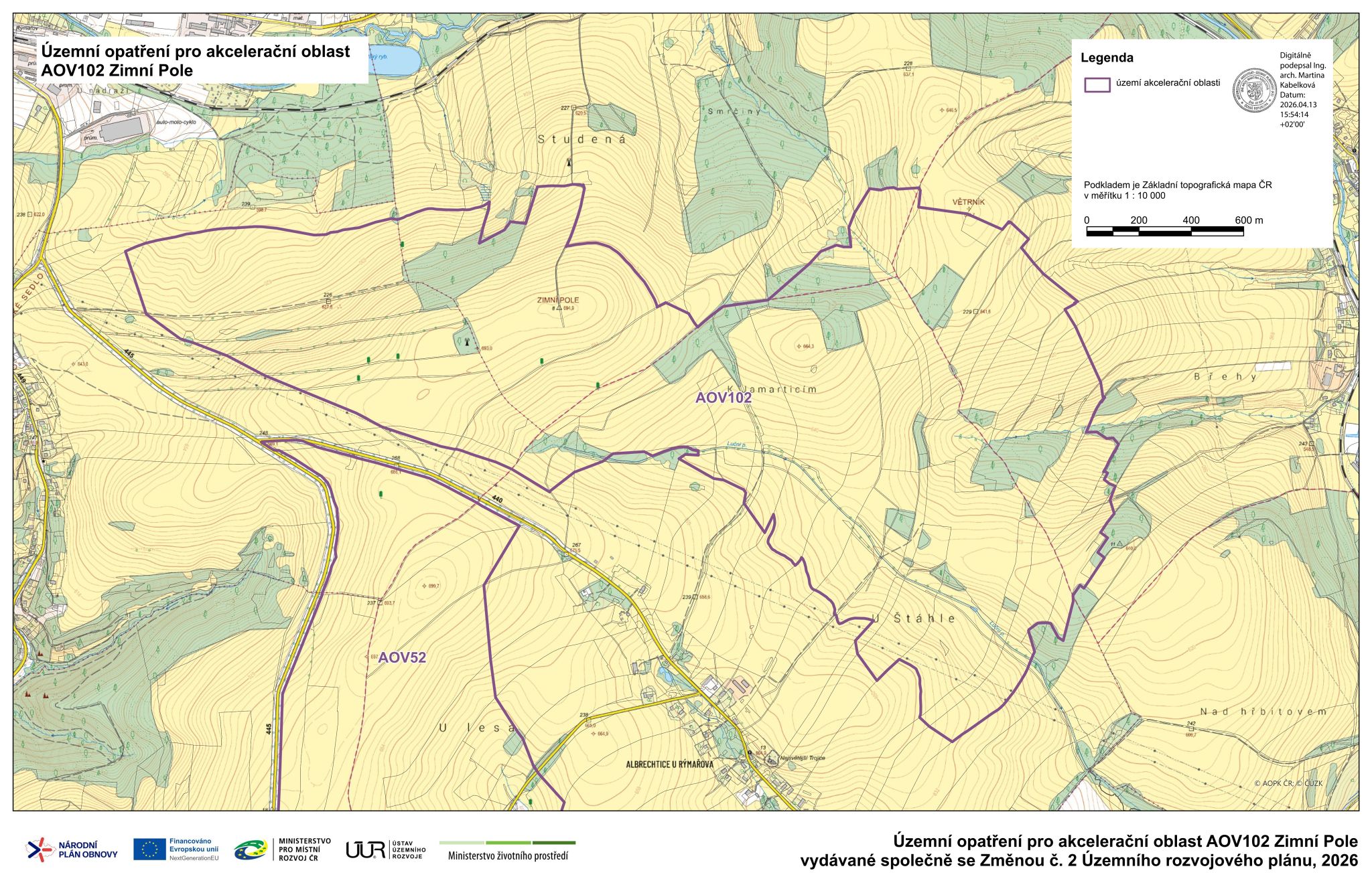 Město Rýmařov proto trvá na tom, že jediným právně i věcně přijatelným řešením je vypuštění akceleračních oblastí AOV42 Jamartice, AOV52 Albrechtice a AOV102 Zimní pole z návrhu Změny č. 2 Územního rozvojového plánu. Trvání na jejich zachování by znamenalo akceptaci řešení, které je v rozporu s charakterem území, se systémem ochrany krajiny, s metodikou vymezování akceleračních oblastí i s principy udržitelného rozvoje území, a které současně nebylo dostatečně vyhodnoceno z hlediska všech relevantních veřejných zájmů.