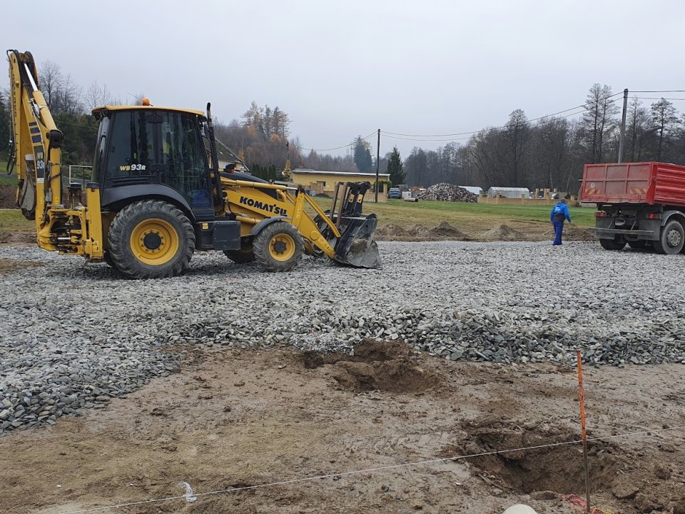 V rámci přípravných prací došlo ještě v roce 2022 u sportovního hřiště k odvodnění plochy a přípravě povrchu položením podkladních vrstev vč. obrub.